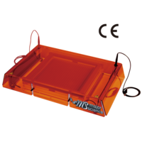 The Flatbed IEF System has been designed to perform all flat bed IEF techniques, including wick-based electrophoresis with horizontal and hand-cast IEF gels, and focusing with IPG strips. The unit includes a large cooling platform which offers increased strip capacity and active gel area. Uniform cooling of the platform is achieved using a large ceramic plate that may be connected to any standard chiller via quick-fit connecters for enhanced gel or strip cooling. An optional rehydration tray is also available for overnight rehydration of up to twelve IPG strips before use.